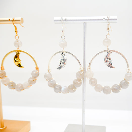 Moonlit Sky Labradorite Wire Wrapped Hoops