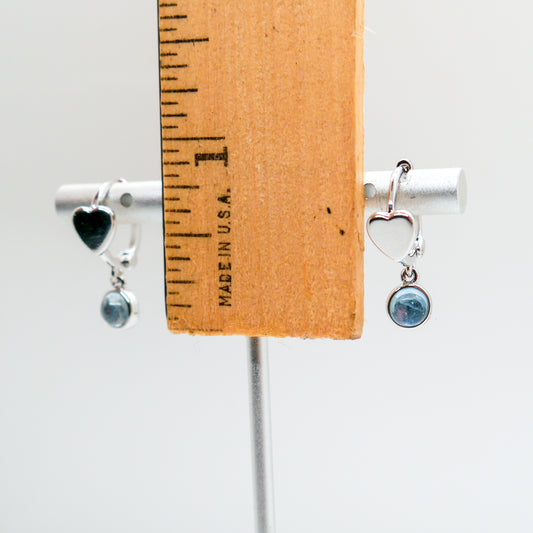 Sold outHeart Dangly Labradorite Huggy Hoops