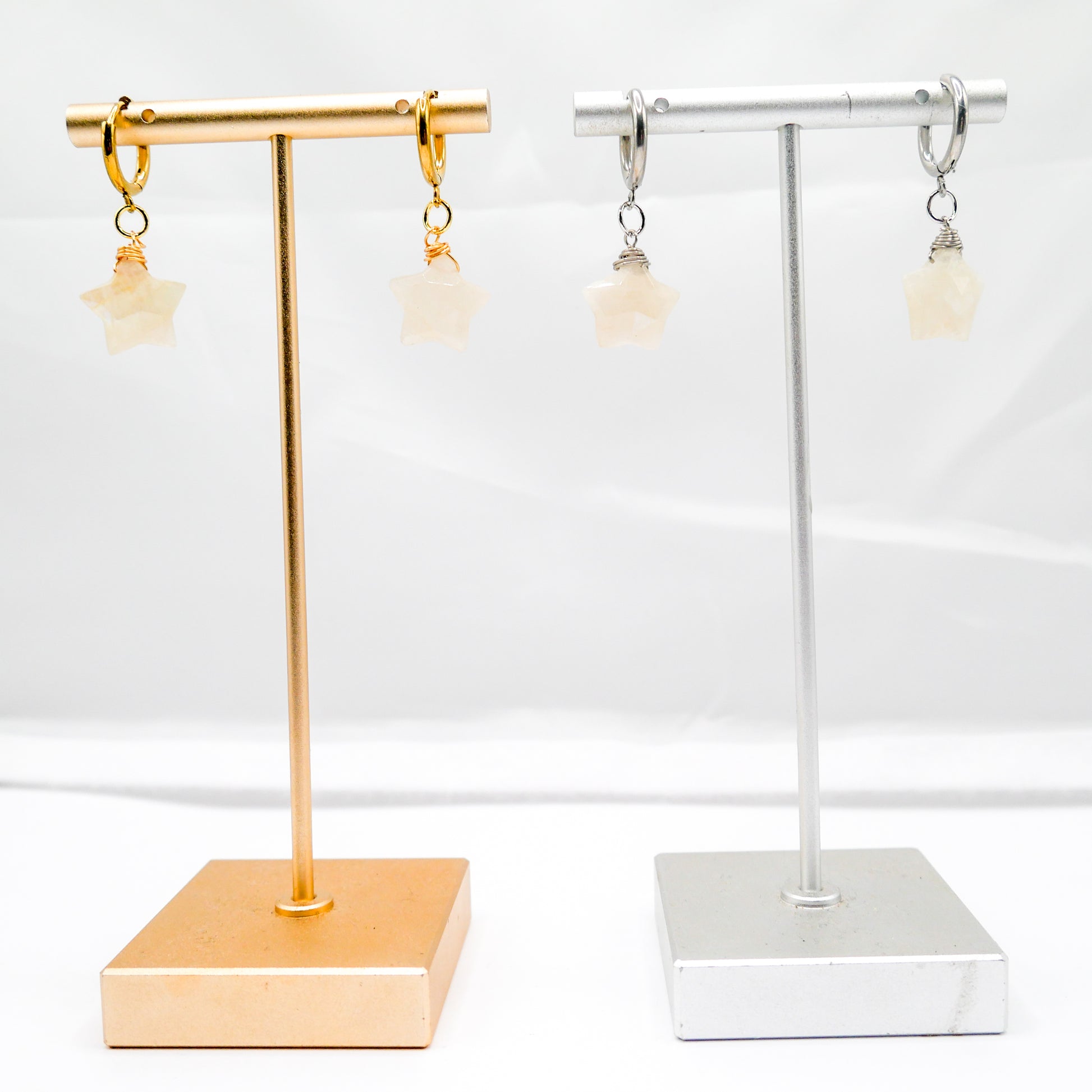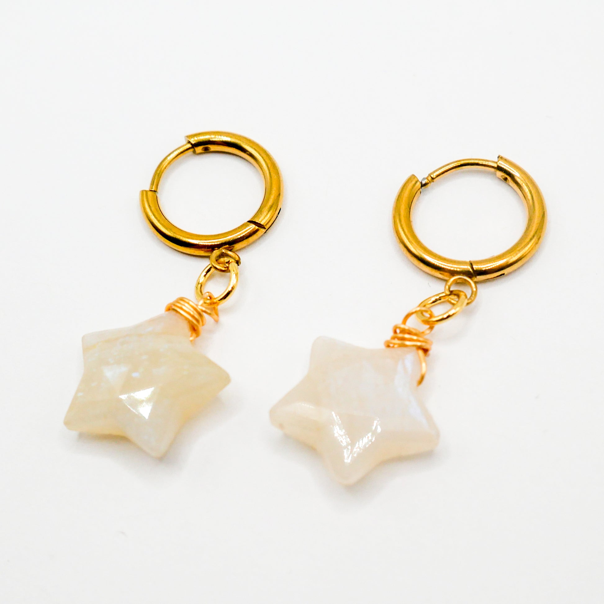 Add a little everyday magic with these petite yet radiant Moonstone Huggy Hoop Earrings. Each star catches the light with flashes of iridescent color that Moonstone is known for. Their lightweight design makes them perfect for all-day comfort, while the delicate dangle on Stainless Steel Huggy Hoops adds a subtle, celestial charm to any outfit.
